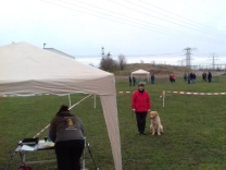 Also Sonntag waren wir in meinem Geburtsort bei Berlin auf dem Hundeplatz zu einer Nachzuchtbeurteilung. Versteht sich ja von selbst, dass ich die Richterin mit meinem Temperament erst einmal eingewickelt habe. Mein Ziehfreuchen konnte ich auch begrüßen, habe mich über das Wiedersehen sehr gefreut, aber dann bin ich vorsichtshalber gleich wieder zu Jurij gelaufen. Es waren so viele Spielgefährten da, wau, alle in meinem Alter, aber leider hatten wir überhaupt keinen Platz, auf dem wir mal hätten toben können. Das fand ich sehr schade, aber sonst war es ein dufter Ausflug.